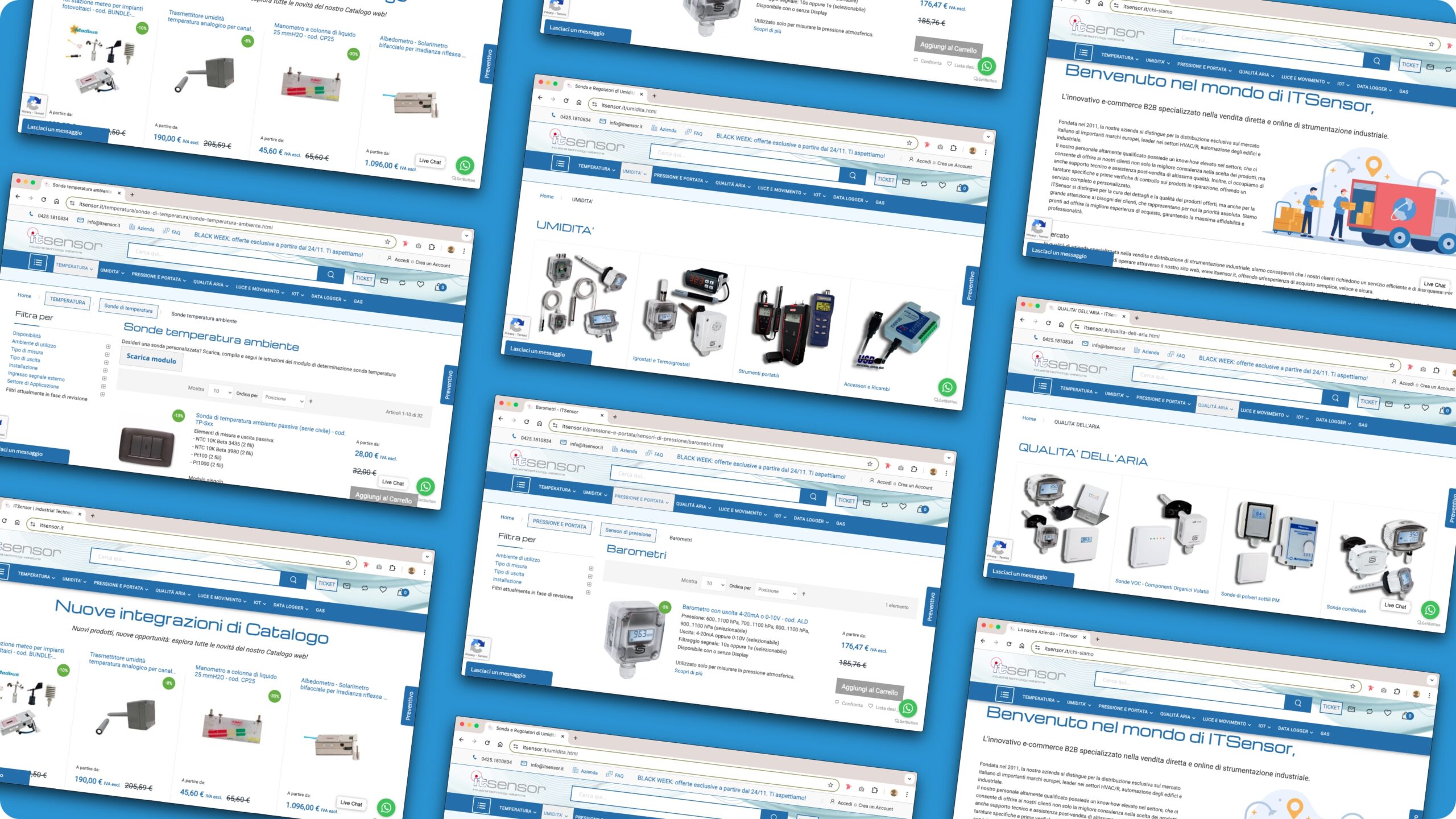ITSensor è un e-commerce B2B specializzato nella vendita di strumenti per il monitoraggio e la misurazione in ambito industriale (HVAC, agricoltura, fotovoltaico, laboratori). L’azienda si è rivolta a Net Informatica per sviluppare un e-commerce più performante, con customizzazioni specifiche legate ai propri processi interni e una strategia digitale capace di aumentare le vendite online.
